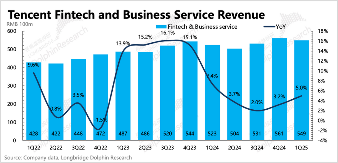 海豚君简单拆分来看,占2/3的支付收入已经触底回暖(参考央行收缴的第三方备付金总额变动趋势,财报披露为同比大致稳定,也就是持平的表现),而企服(云业务和视频号佣金等)则继续加速增长。