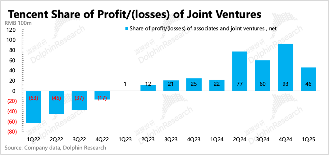 (3)经营费用逆势控制。一季度核心主业的三费总支出375亿(剔除育碧重组影响),主要优化的是销售费用,尽管有密集的游戏活动和元宝的史诗级推广(部分外部推广费用),但销售支出同比持平。