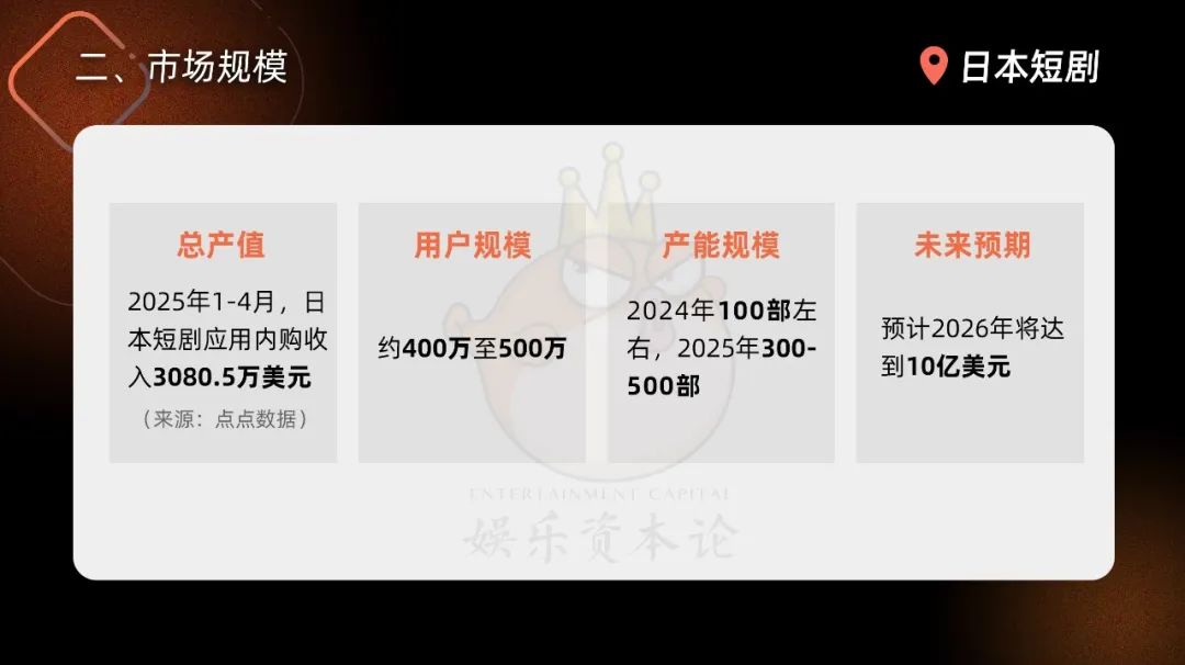 早在去年3月,娱乐资本论就关注到中国短剧出海之势。今年3月,娱乐资本论在日本走访了多家短剧公司,发现比起平台的火热入局,日本短剧市场实际上仍然是一片蓝海,特别是本土自制剧团队稀缺,整体产能低,制作产业链还远未成熟。