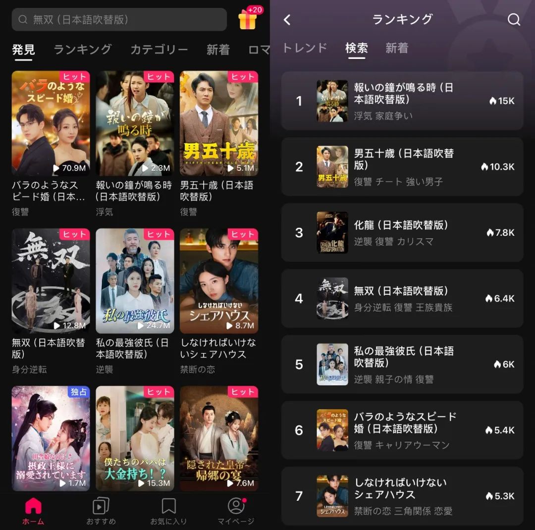 直接复制国内爆款剧本是和雅文化的成功方法论之一,他们承制的两部日本爆款本土剧《保洁员竟是女总裁》和《大富豪のバツイチ孫娘》(百万富翁的离婚孙女),都是国内爆款剧本稍作修改后翻拍,前者上线不到半个月流水100万美元,后者现在流水已经超过500万美元,成为现阶段日本短剧天花板。