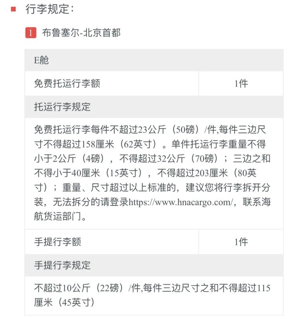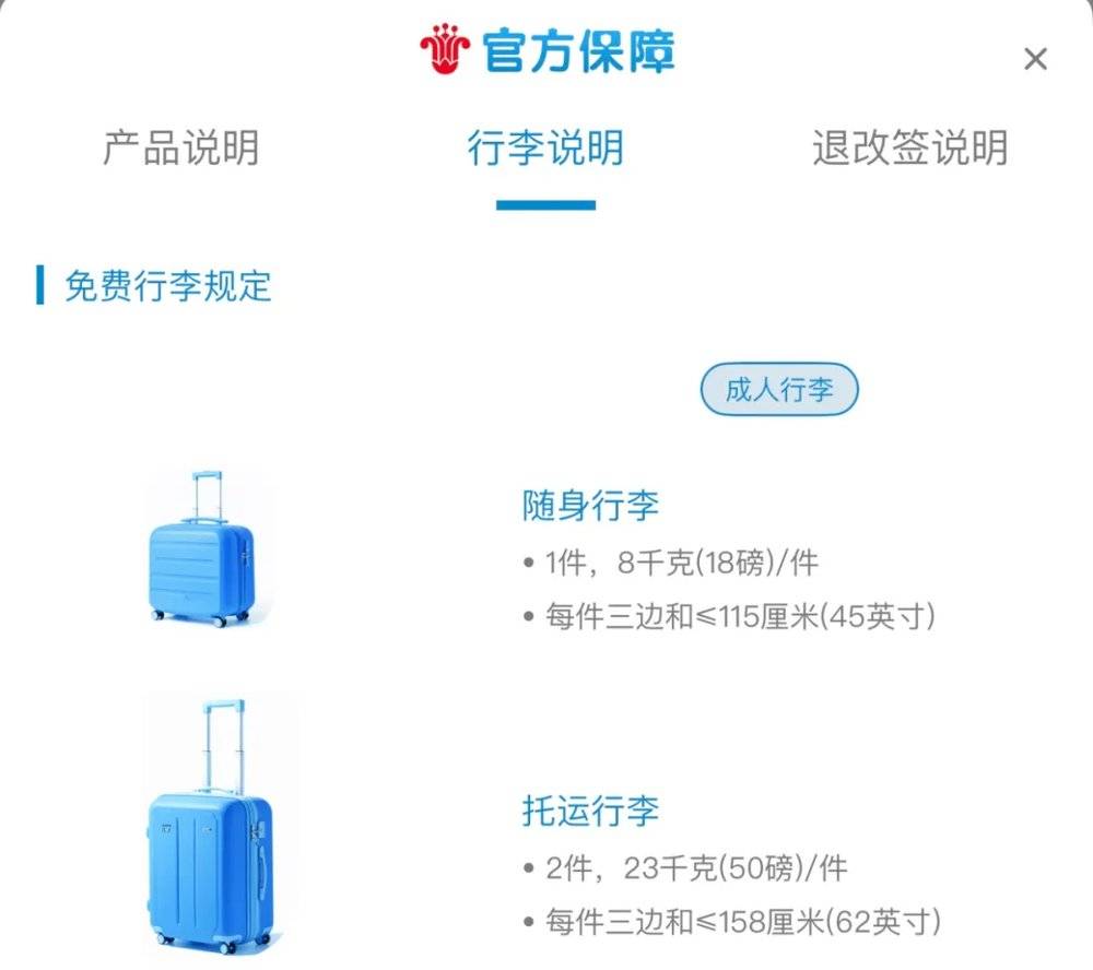 旅客在购买机票时可以明确看到关于行李的规定,横向对比一下四大航,其中国航: