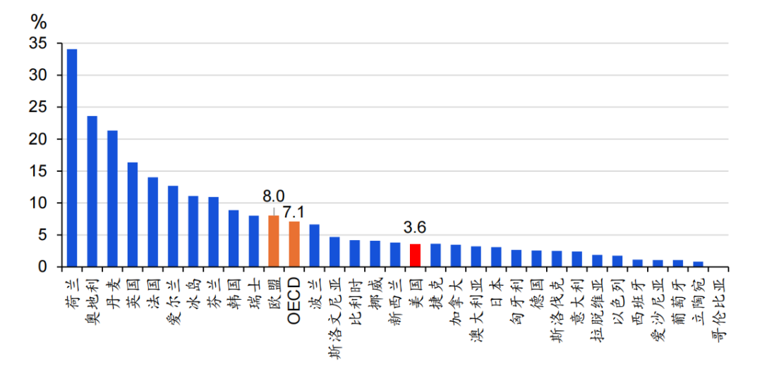 图2 2022年OECD成员国社会租赁住房占各国住宅总量比例