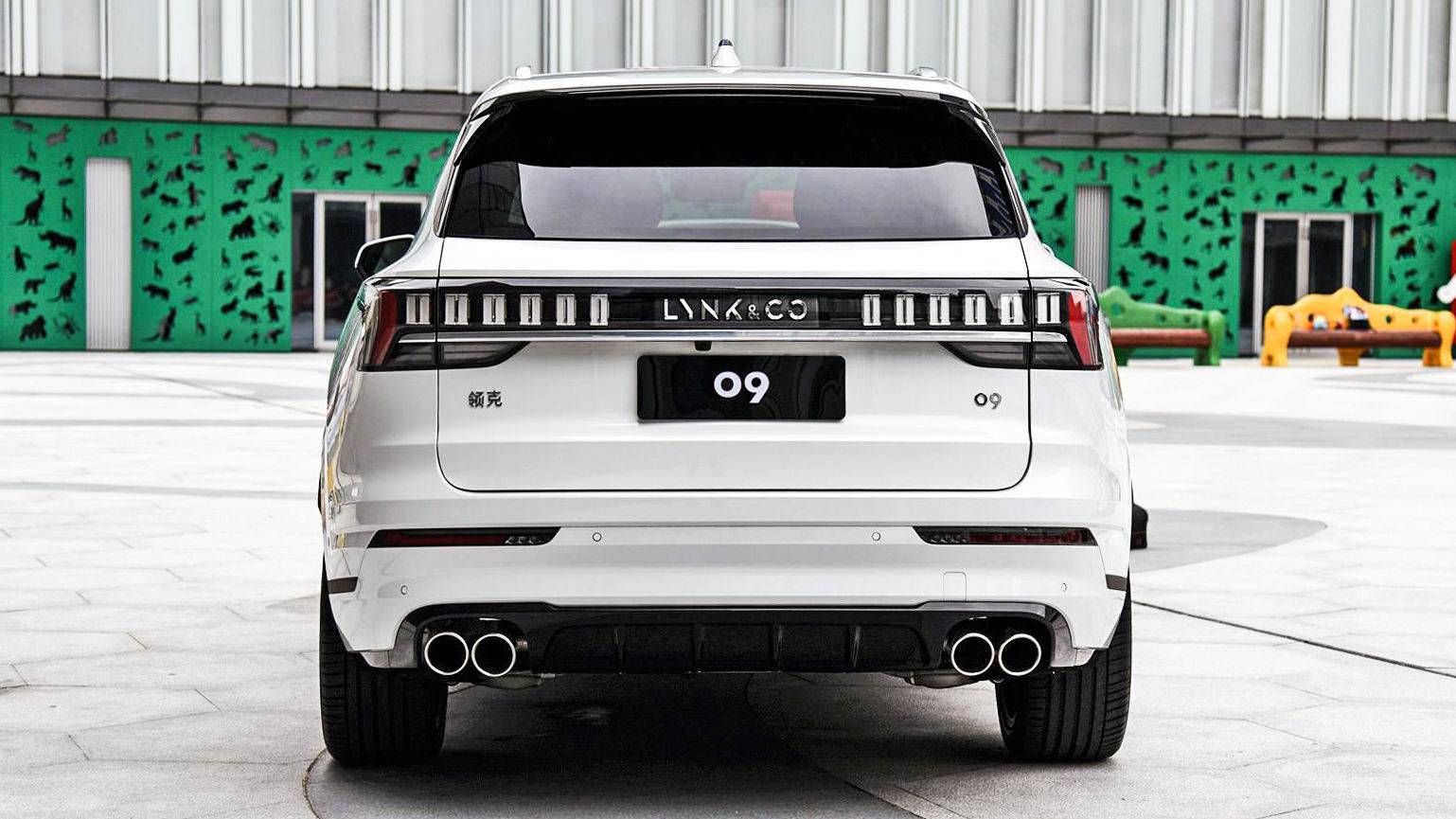 领克09的车尾依然是典型的领克家族化风格,LED灯组官方称之为“能量晶体”式设计,辨识度非常高。尾门上方的小尾翼,配合下方霸气的四出排气,看起来一点都没有传统中大型SUV的油腻感,非常清爽。