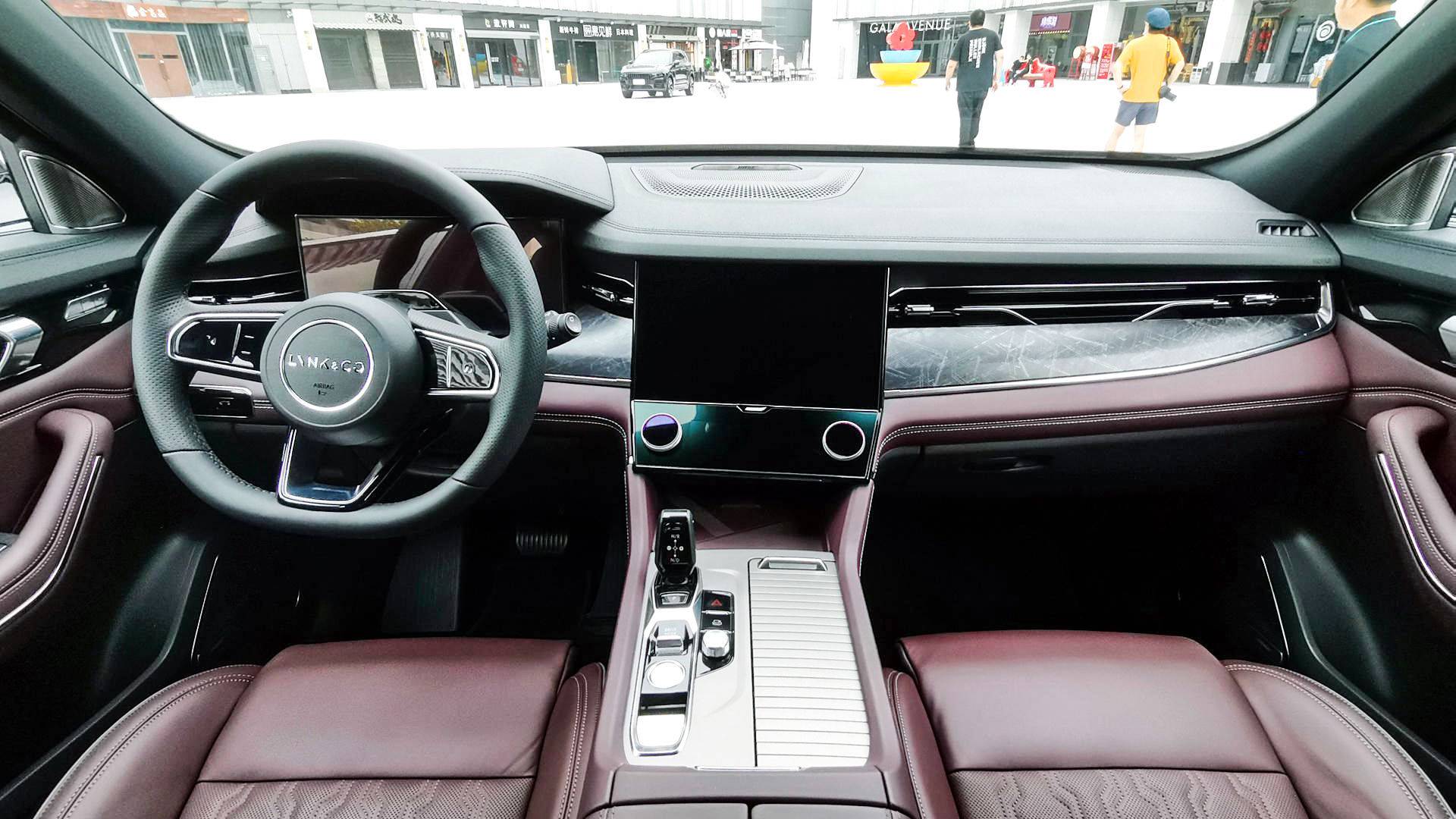 领克09的内饰基本可以说是在现有领克车型上的一次全面升级,整体的豪华感有了明显提升,同时在细节设计上也与此前的领克车型做出了一定区分,方向盘也采用了全新的样式,不对称式的中控台造型依然体现出了领克注重驾驶的风格。