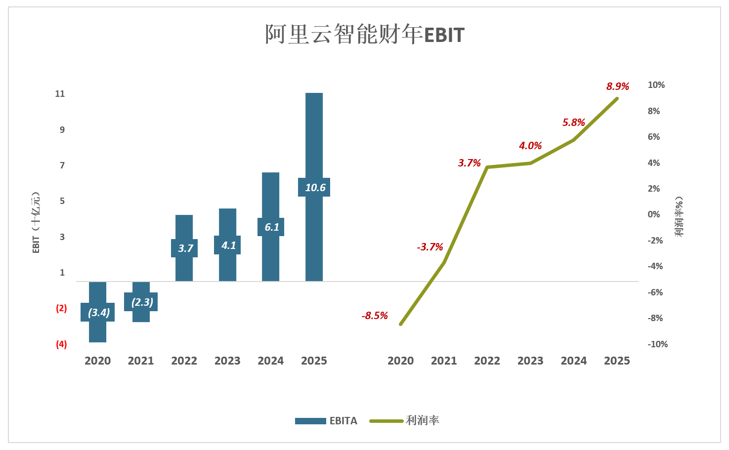 2022财年,云智能首次盈利。最近三年盈利能力稳步提高: