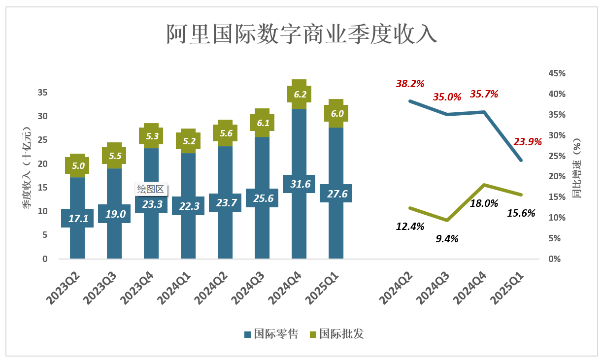 2025年Q1,零售、批发营收分别276亿、60亿;同比增幅分别为23.9%、15.6%;