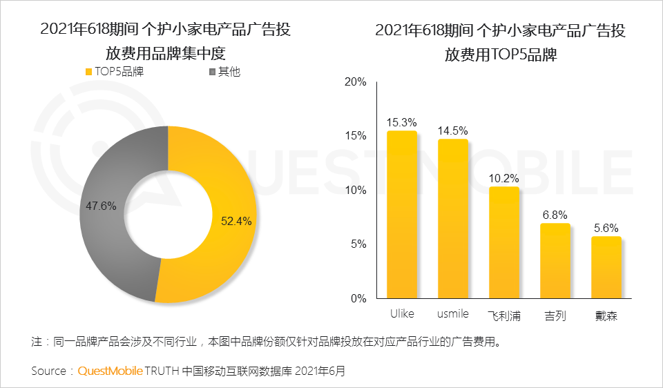 个护小家电行业广告投放品牌集中度较高,其中,新品牌通过广告曝光争夺用户的倾向更为明显。