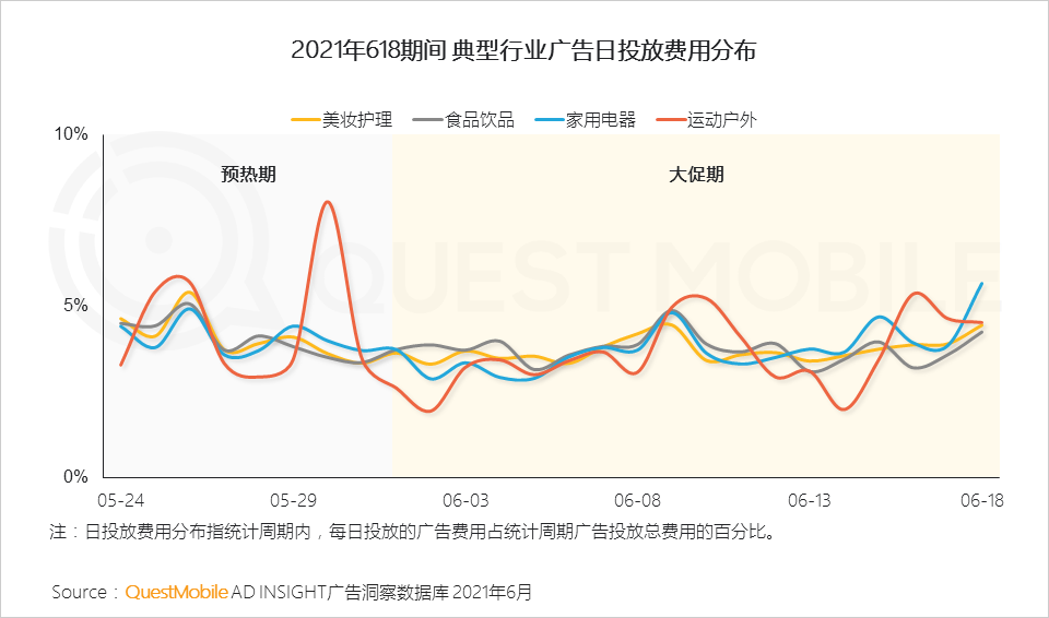 618期间,电商广告投放节奏明确,对整体广告市场有明显的带动作用。
