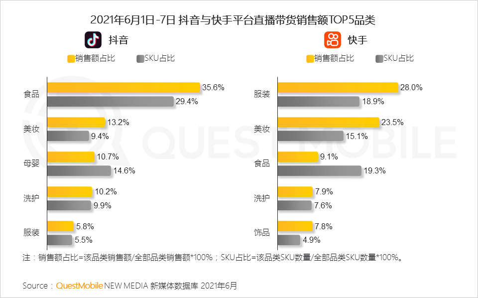 不过,直播带货、直播晚会模式,也在悄然影响传统大促的逻辑。直播结合短视频内容,成为电商平台的主要营销动作,直播对用户购买决策的影响,也持续加深。短视频平台当然也不会放过机会,抖音、快手分别以“兴趣电商”“信任电商”切入,通过直播晚会+明星直播拉升用户参与度,从最终效果看,抖音的食品、美妆、母婴的销售额位居前三,快手则以服装、美妆、食品为主。