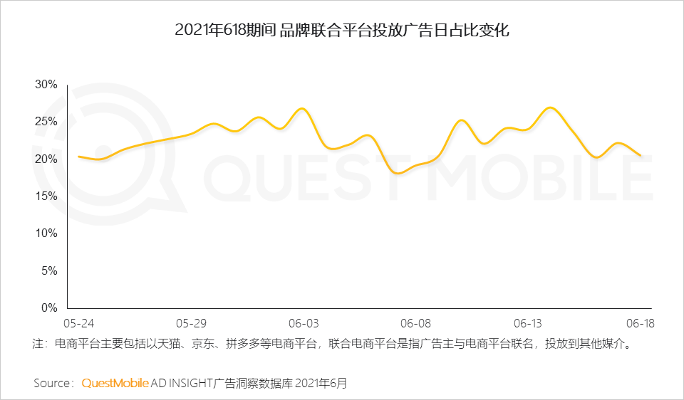 从营销节奏看,预热期品牌倾向与平台联合引流,大促高峰期则减少联合投放,重点突出品牌促销信息,增加用户关注度和购买频次。