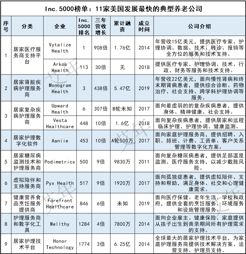本文来自微信公众号:艾年,作者:小爽,原文标题:《11家美国“发展最快的”养老公司,最高营收增长900倍、融资6亿美元!》