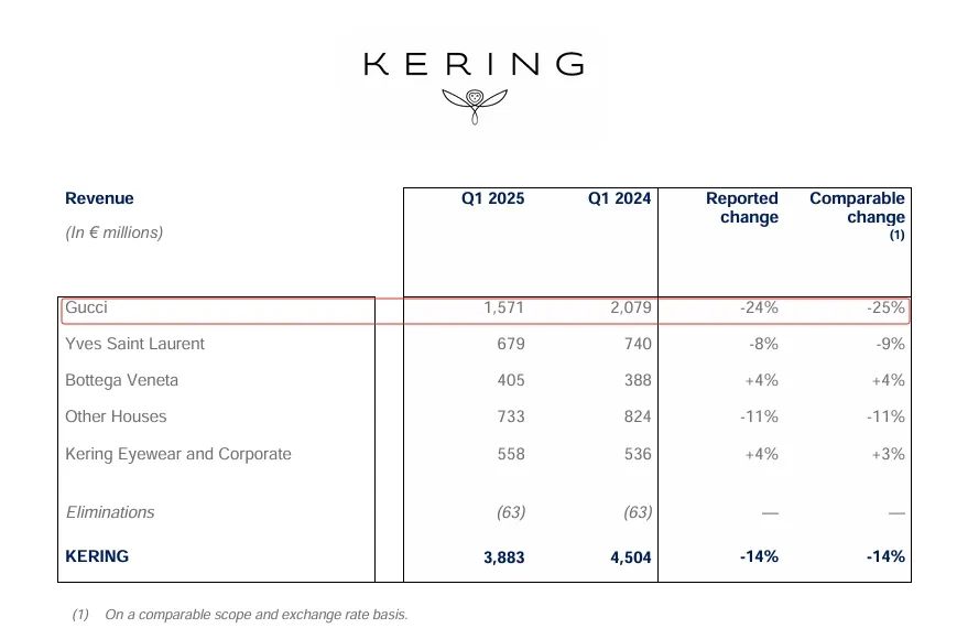 开云集团主品牌Gucci一季度表现不佳,图源:财报