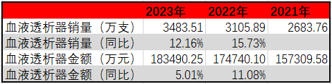 公司作为行业头部企业,积极参与带量采购的招标,通过销量的增长弥补了价格下降的压力,血液透析器业务的销售额持续增长。