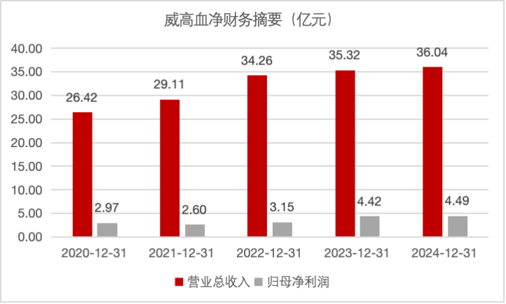 同一时期,血液透析业务龙头威高血净的业绩却在稳步提升。财报显示,公司的收入和归母净利润近年来持续增长,2024年这一数字分别增长至36.04亿元和4.49亿元,威高血净也成了医疗行业低潮期的逆行者。