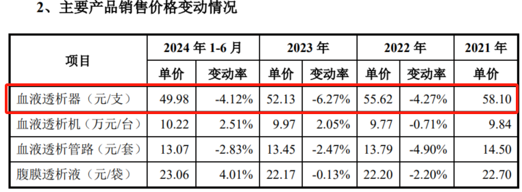 目前公司的血液透析器和血液透析管路产品已经开展了带量采购,公司相关产品面临着降价压力。以血液透析器产品为例,2022年和2023年销售价格分别下降了4.27%和6.27%。