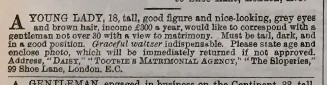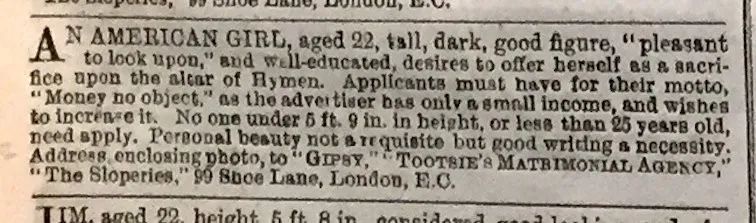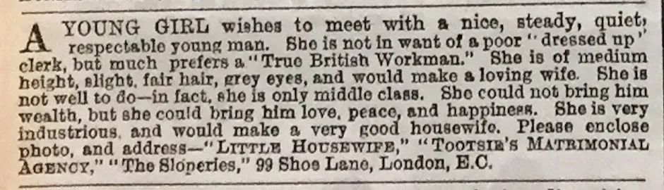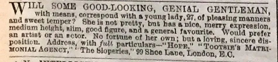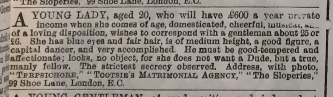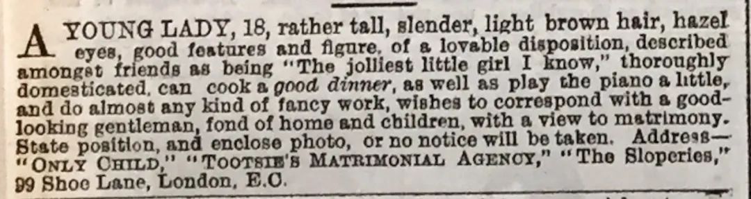 原文/medium.com/history-of-women/real-dating-ads-from-the-1880s-you-couldnt-make-these-up-if-you-tried-8f0f3d3c22c1