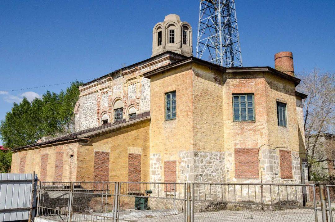 教堂位于火车站附近的一个电站里,孤孤单单地矗立在一片发电设备之间,看得出来它很艰难地保持着自己的存在。教堂没有经过大的维修,尖顶的部分是后建的,墙壁有些破损,比较有岁月蹉跎的韵味。