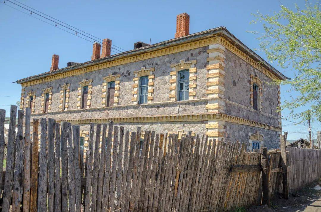 博克图遗留的俄式建筑比较分散。火车站附近有个精雕细琢的砖石结构二层楼,这栋建筑没有太多具体的信息可查,挂牌上只是写“俄式砖房”。