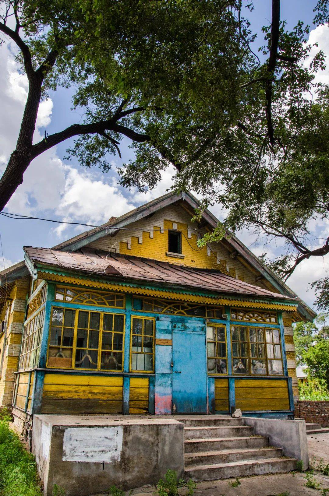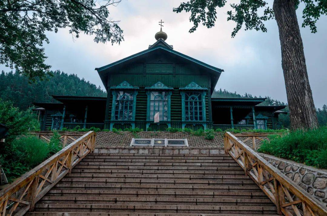 中东铁路沿线唯一的木制东正教堂和其它俄式老宅相比,窗棂上的雕刻更精细,颜色也更鲜艳,似乎被重新粉刷过。