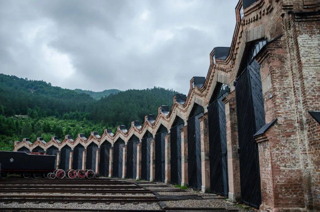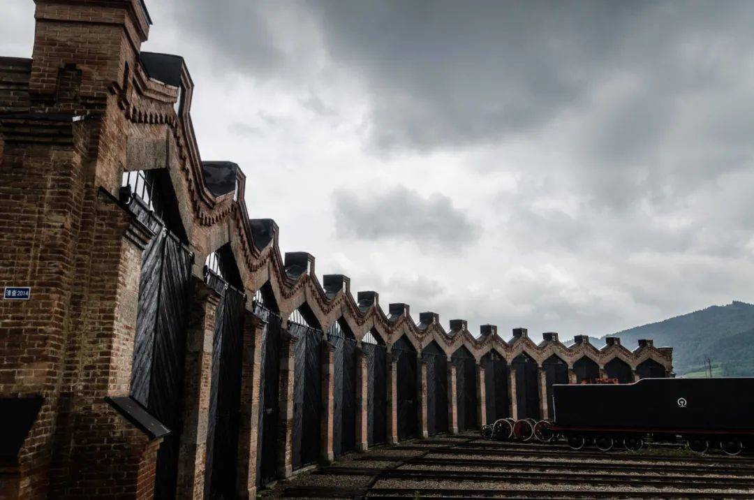 横道河子的“镇镇之宝”--机车库,正面看是一幢扇形高耸的砖墙,风吹日晒让墙面变得斑驳,墙内镶嵌着黑色拱形的大木门,很是壮观。