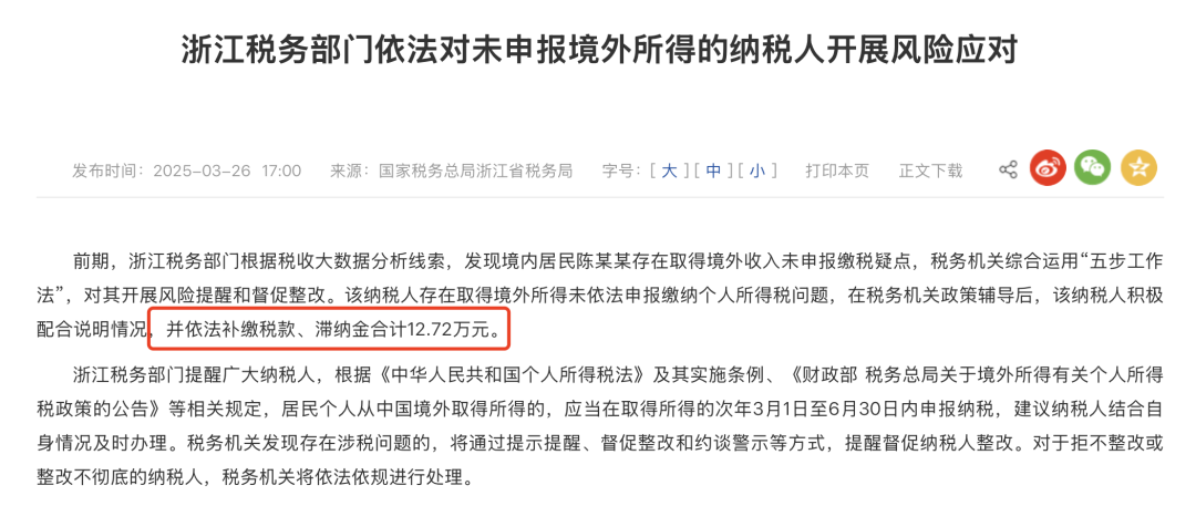 今年的 3 月 26 号,上海,浙江,山东,湖北四地的税务局官网都发了公告。最低补缴罚款和滞纳金 12万,最高的 141 万。