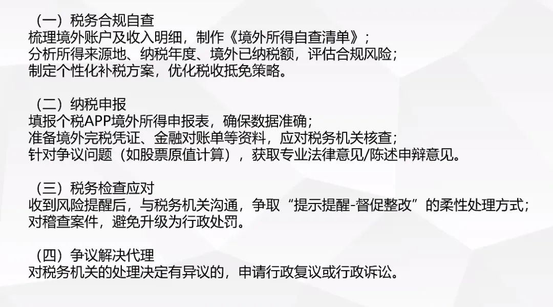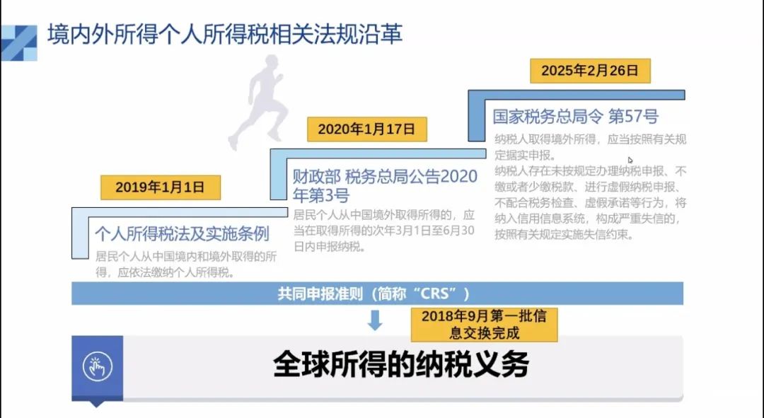上图可以看到,个人所得税法的三次重要文件,2020 年开始明确规定境外个人所得要征税,2018 年开始交换 CRS 信息,到今年都第 7 年了。