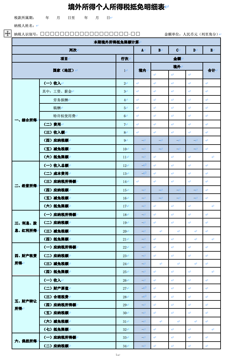 我在浙江税务局官网上下载的个人明细表是长这样的,大家可以去下载一下,开始做自我盘点。