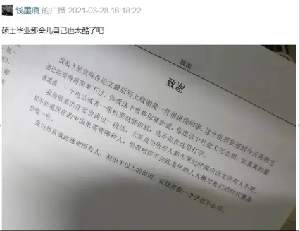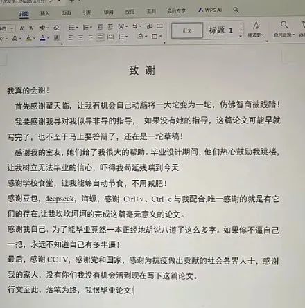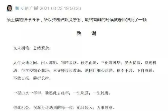 如此情绪饱满的致谢,不知道正主最后能不能顺利拿到毕业证。