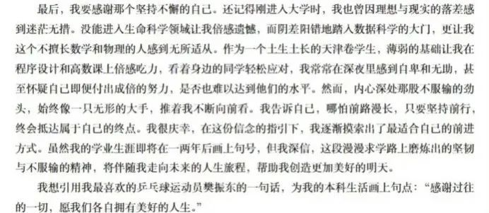 这些学生中有的是迷茫在本科阶段,以樊振东的话激励自己。