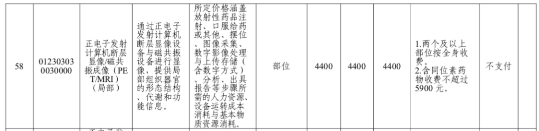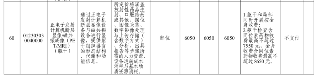PET/MR检查方面,局部PET/MR检查的收费标准定为4400元(含同位素药物收费不超过5900元,即同位素药物单项收费上限1500元以下类同);躯干PET/MR为6050元(含同位素药物收费不超过7550元);全身PET/MR为7150元(含同位素药物收费不超过8650元)。