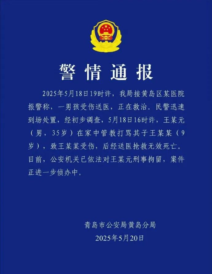 就在小朱去世前一天,青岛另一个9岁小孩被父亲家暴致受伤,后抢救无效死亡。