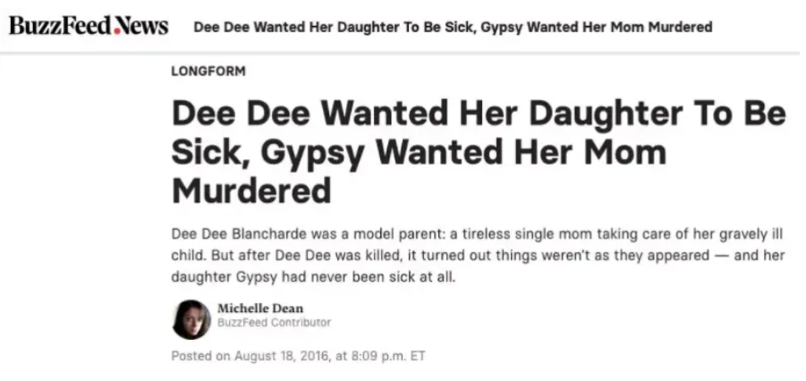 在别人眼中,Gypsy是个可怜的孩子,身患白血病、哮喘,因脑损伤失智,无法站立,只能坐在轮椅上,而她的母亲Dee Dee Blanchard,为了照顾她,历经艰苦,还曾经无家可归。