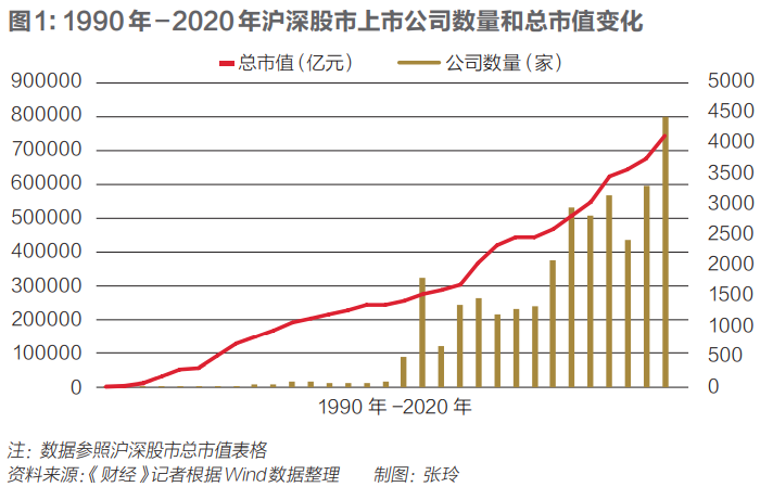从规模指标看,根据Wind和国家统计局的数据显示,上市公司数量从上交所开业之日(1990年12月19日,深交所已于同年12月1日试营业)的8家发展到2020年12月31日的4140家,30年年均净增加140家。