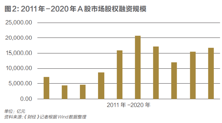 融资是资本市场最主要的功能之一。近年来,中国资本市场的直接融资总额持续攀升。Wind数据显示,2015年~2020年,沪深两市股权融资额连续六年超万亿元,其中,2016年最高,达到2.07万亿元,2020年融资额为1.72万亿元。