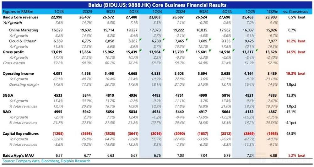 百度一季度业绩于2025年5月21日港股盘后放出,整体来看小超预期,简单来说,DeepSeek帮了大忙!