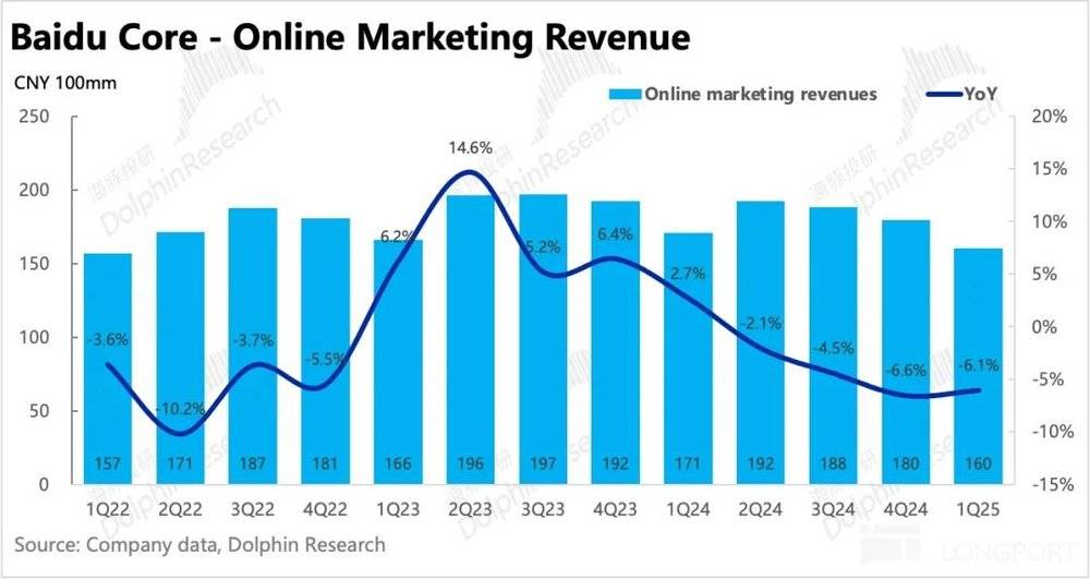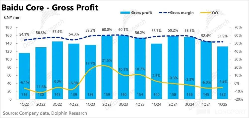 3. 广告实际不佳,只能看AI搜索变现补缺:广告是预期之中的承压,同比下滑了6%。虽然符合公司给的指引,但鉴于一季度宏观环境没有想象中的差,因此部分机构在上个月其实微微上调了百度广告的表现。这就导致从预期差的角度,广告收入也不好。