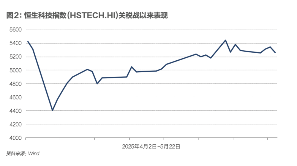尤其在5月12日中美发布日内瓦经贸会谈联合声明,双方大幅下调关税后,A股、港股市场均出现明显反弹。当日下午3点开始,香港交易所电子屏上的滚动数字令人振奋——恒生科技指数快速拉升,最终收涨5.16%,恒生指数则上涨2.98%。当日上证指数亦收涨0.82%,报3369.24点。上述指数在当日均超越4月2日的收盘点位。