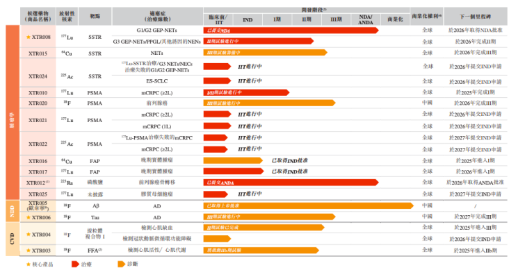 上述管线,先通医药在国内进展领先。例如,XTR008在今年4月份已经递交NDA申请,预计在2026年获批,有望成为国内首个SSTR治疗核药,解锁50亿元市场。