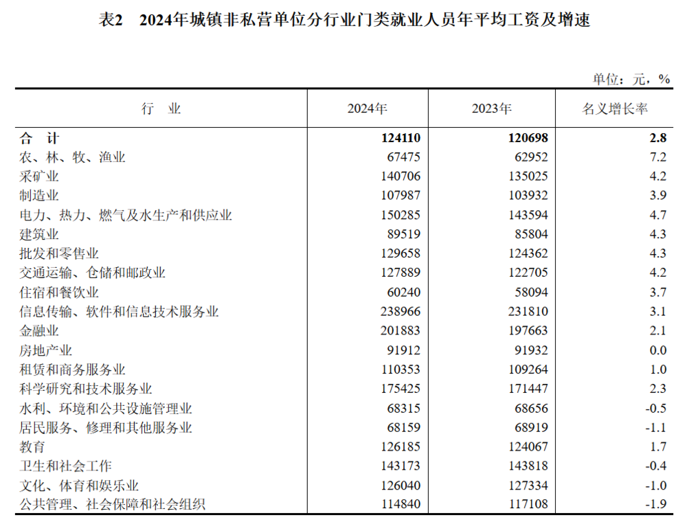 数据显示,2024年城镇非私营单位就业人员平均工资为12.4万元,私营单位为6.9万元。