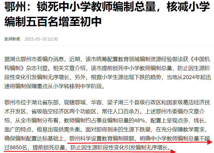 本文来自微信公众号:城市财经,作者:余飞,原文标题:《锁死编制总量!教师缩编,开始了》