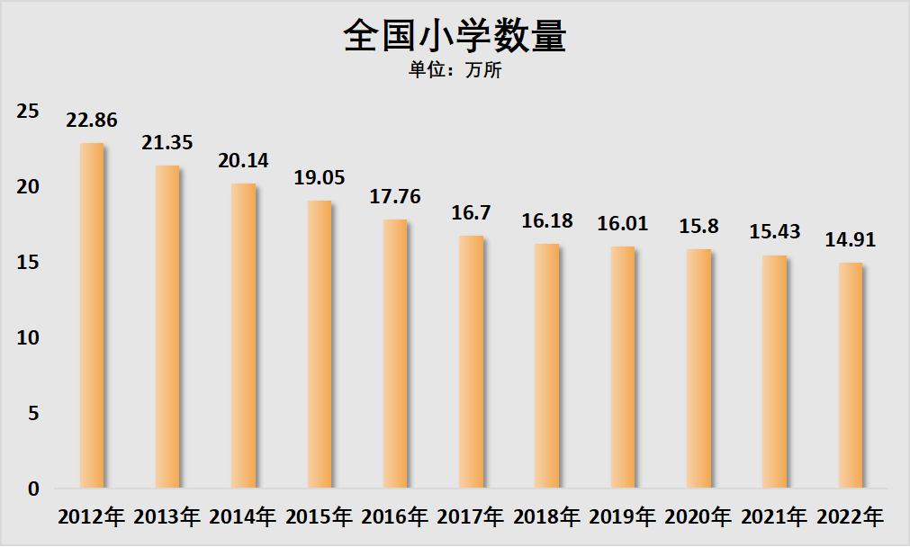 过去几十年,虽然小学数量在城市化过程中不断减少,主要是农村小学生进入城镇学习,城市学校扩建,农村学校关闭带来的动态变化,但小学在校生数量一直增长。