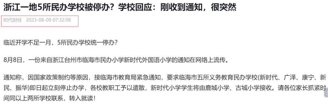 2023年8月份,浙江台州下辖的临海市,一口气关停了5所学校。