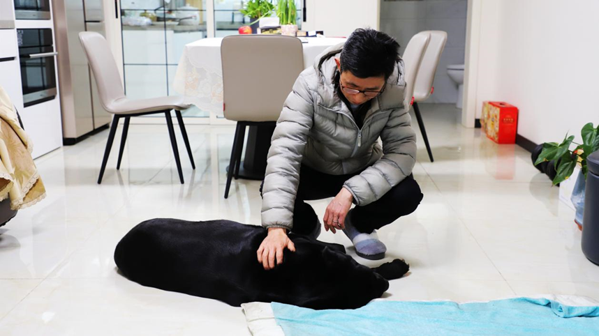 59岁的叶波,牵着14岁的老K在清晨的小区里漫步,这成了他们每天的必修课。他牵着它的链子,它成了他的眼睛。