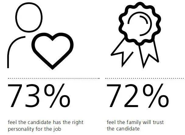 家办在招聘新员工时,认为信任和性格比教育和资历更重要。近四分之三(73%)的受访家办表示,他们希望候选人拥有适合这份工作的性格,而几乎相同比例(72%)的受访家办则希望找到一个家族能够信任的人。相比之下,略超过一半(52%)的受访家办表示,教育背景和行业特定资格很重要。