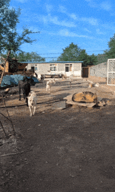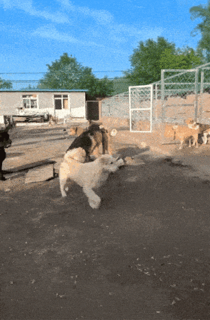 像大黑牛和德牧那几只大狗都是长毛和大头带大的,它们对其他狗下手都挺狠,唯独怕长毛和大头。