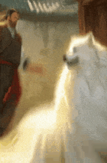 这时观众已经察觉不对劲了,紧接着小白狗走到刚才那只一挑四的黑背面前,黑背瞬间丧失了刚才的霸气,赶忙伏下身子向小白狗示弱,小白狗则把脚放到黑背身上以示警告。而跟黑背对峙的那几只狗也开始神色慌张,不安地四处走动。