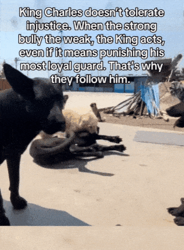 “查尔斯国王无法容忍不公正,强者欺负弱者时,国王就会阻止。即便这意味着惩罚它最忠诚的护卫。这就是狗群愿意跟着它的原因。”