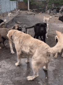 刚开始四只狗围着一只黑背龇牙咧嘴狂叫不止,气氛紧张到了极点,但那只黑背丝毫不怯反而主动出击,单点突破扰乱了对方的阵型,一挑四勇猛无比。