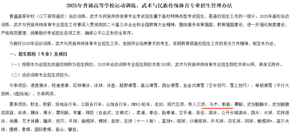 《2025年普通高等学校运动训练、武术与民族传统体育专业招生管理办法》显示,2025年运动训练专业招生院校共有155所,除了北京体育大学、上海体育大学、首都体育学院等体育类院校,还包括复旦大学、四川大学、同济大学等985高校。