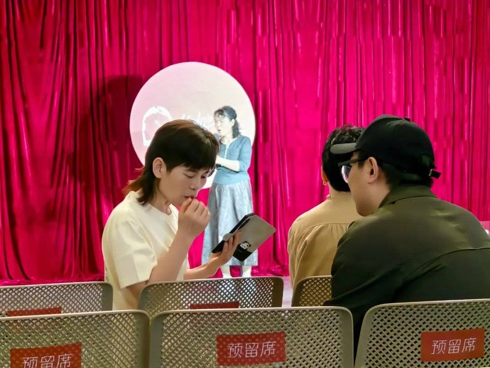 候场时还在捋稿子的青柳(左)。(图/新周刊)